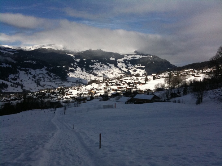 Anyhow, we had mixed weather but plenty of opportunity for training, in between the obligatory skiing and snowboarding I found time to hike up the mountain twice (once with just trekking gear with it chuking it down with snow, and once with my snowboard on my back for the ride down) and for a run around the valley.